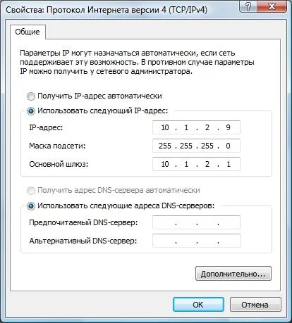 Сетевое подключение, свойства, протокол TCP/IP - скрин.