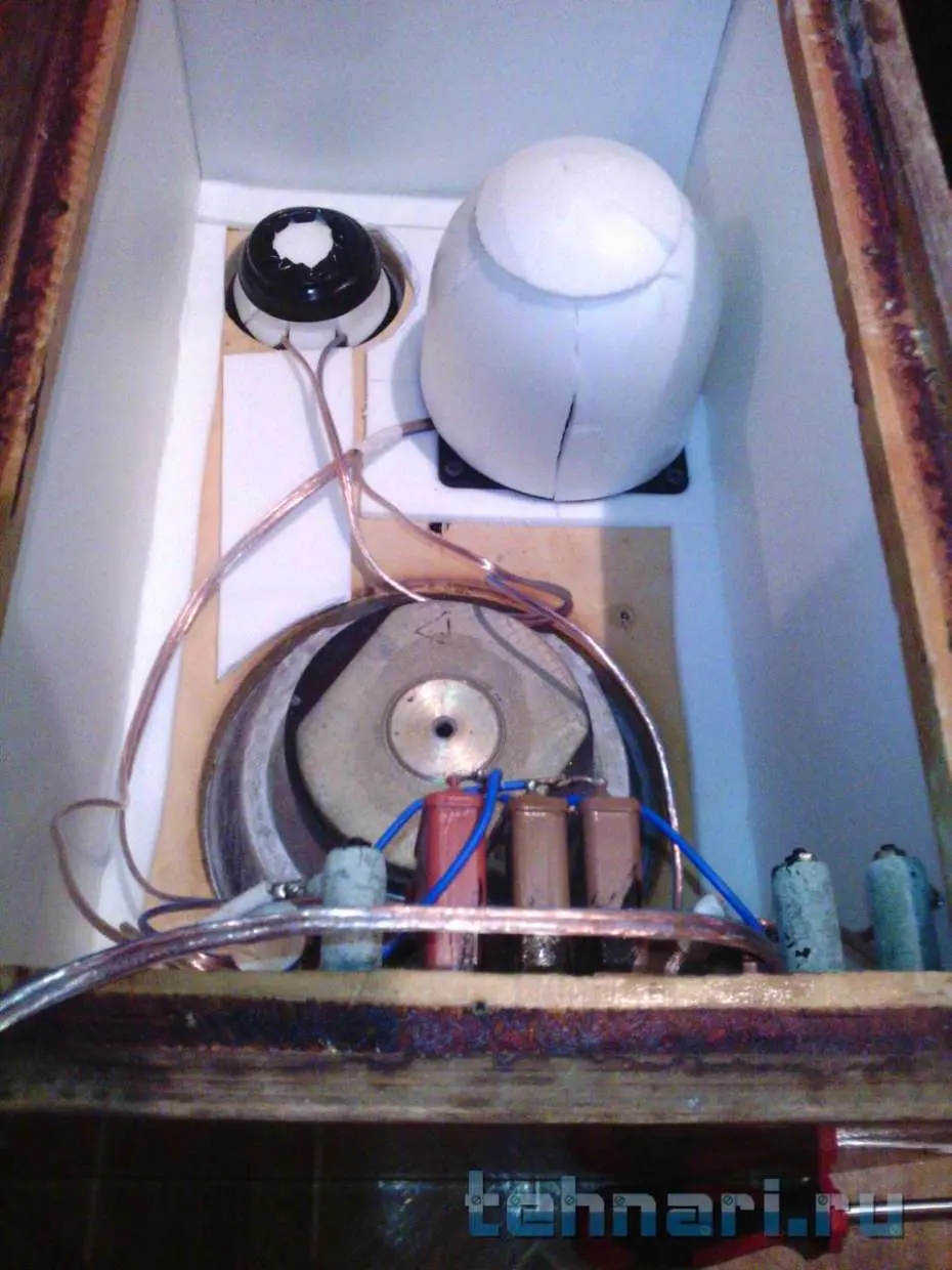 Молодец! Опилки пособирал? Перемешивай их с клеем ПВА и забивай щели между дыркой и динамиком, надежней будет чем пластилин.вот что получилось, если есть замечания, пишите