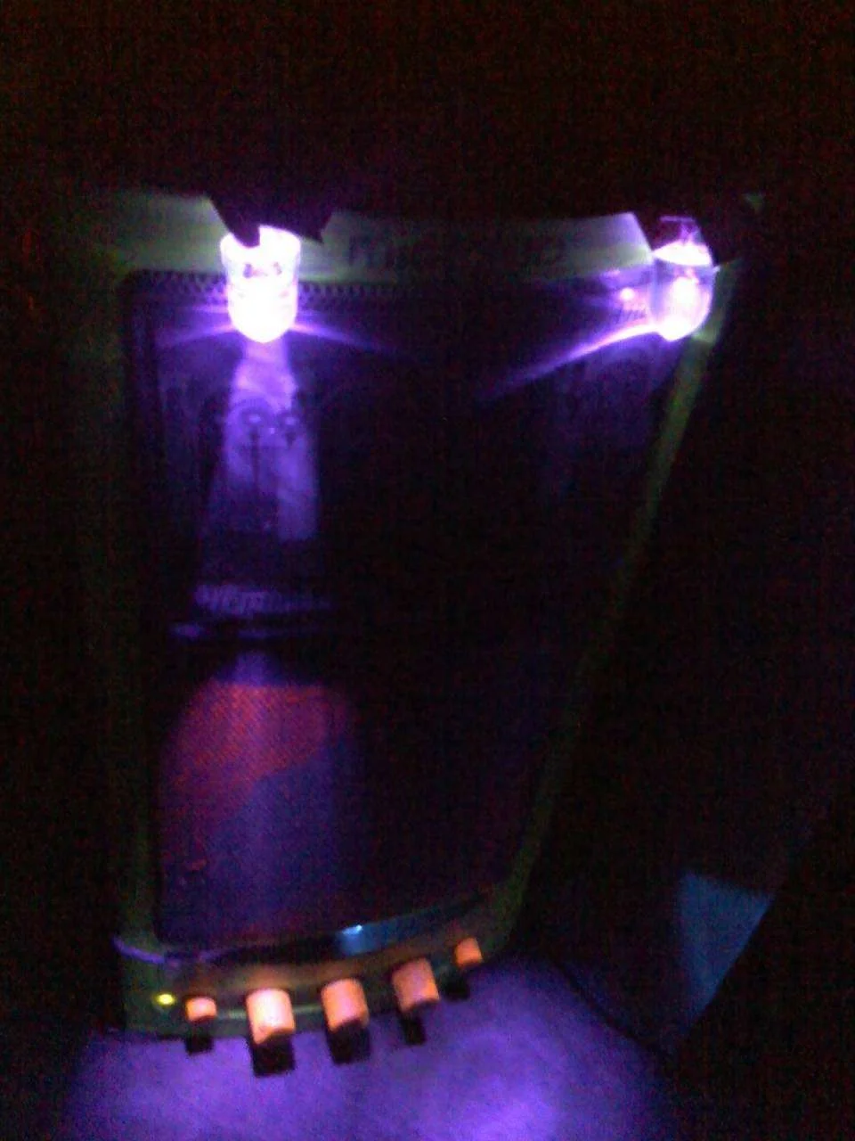 7 и 8 фотка - колонки красил дома, но по 2 УФ и 1 многоцветного диода на колонку - крутил в морге))