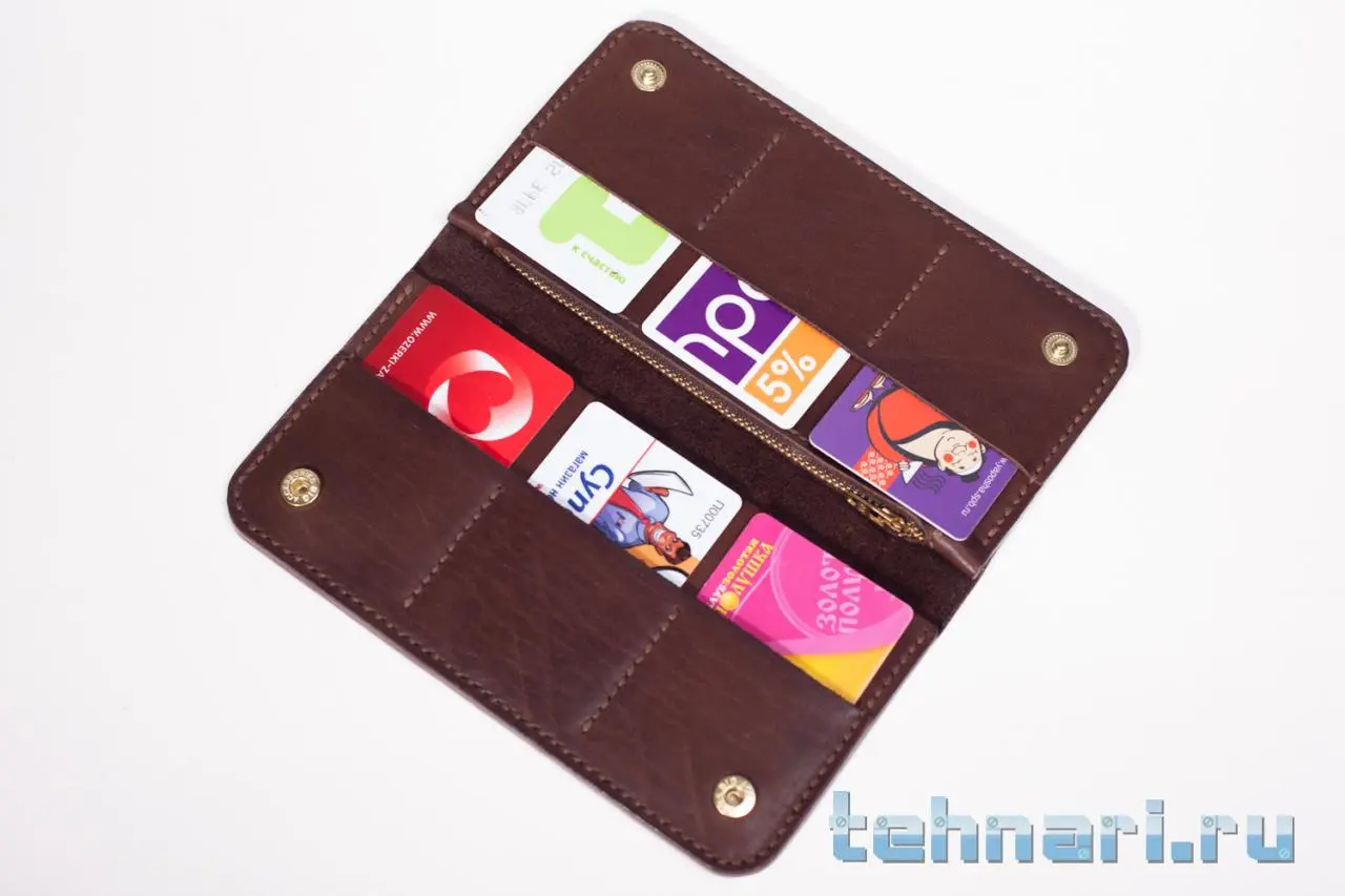 Хочу отметить, такой кошель мне нравится гораздо больше, чем просто лонгер с 2мя картами и отсеком для мелочи на кнопке. Вместительность в несколько раз больше (4-6 карточек против 12+, мелочи тоже больше влезет), кошелек легкий за счет тонкой кожи и удобный. Мелочь всегда под замком,а не высыпается из под клапана.