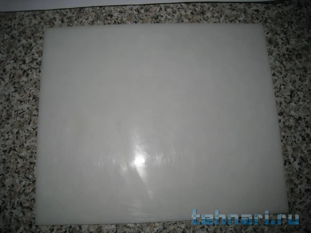 И так, для начала полез в загашник и откопал там полотно белого матового плекса (оргстекло как нынче любит говорить человечество), от которого отрезал нужного размера прямоугольник: