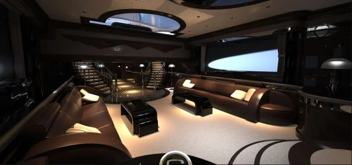 Его длина 38 метров, в нем четыре огромные каюты с 52-дюймовыми LED-телевизорами и дорогими стерео-системами Bang & Olufsen.