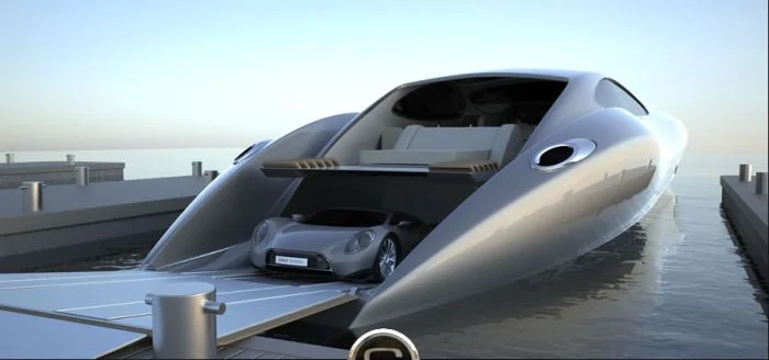 Но главный сюрприз для владельца яхты - это то, что в наборе идет и потрясающий суперкар, гараж для которого также находится внутри яхты.