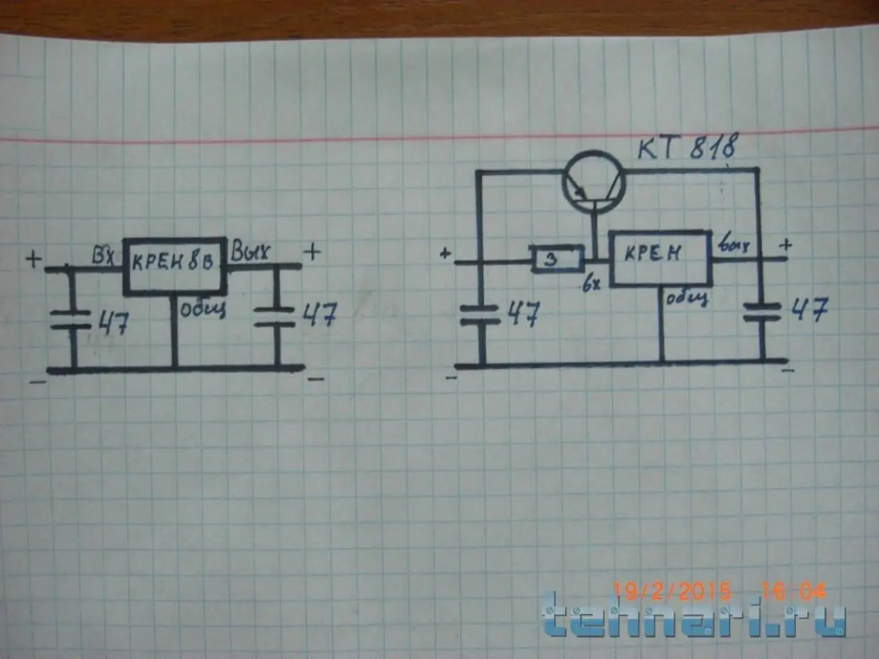 При этом сопротивление транзистор будет открываться при меньших токах КРЕНки!, тоесть 120-130 мА (0,7В делим на 6 Ом =). Возьми два резистора по 6 Ом и включи их паралельно, суммарное будет 3 Ома и мощность в 2 раза возрастёт! (никогда не занимался последовательным и паралельным включением? Тогда пора учиться! Закон ОМА учил? Применяй!
