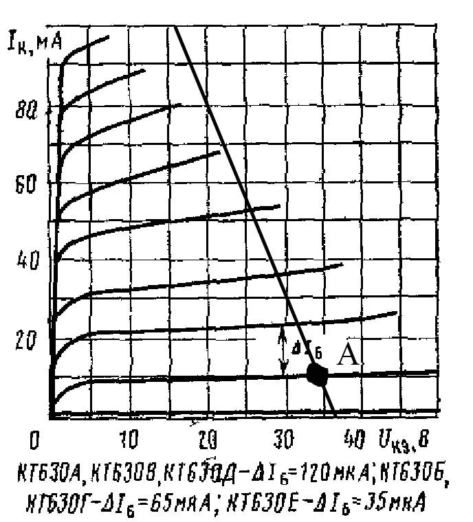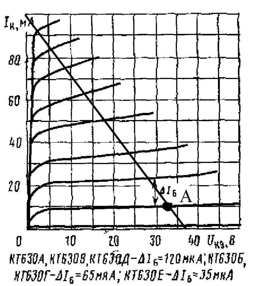 Транзистор КТ630А для него Iкаmax=1А Но на ВАХ высшее значение 100 мА..