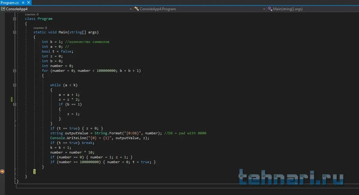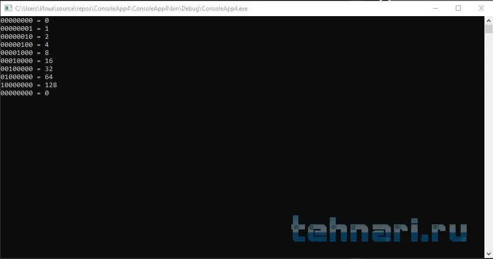 Console.WriteLine("{0} = {1}", outputValue, z);