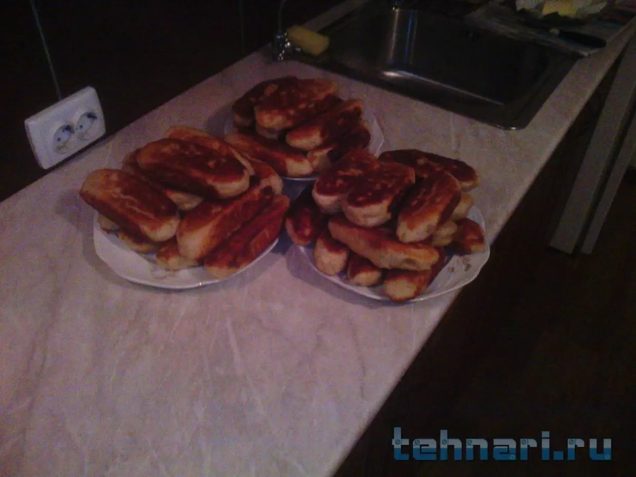 Пирог поднялся! не надо его опускать, сразу ставь в печку! 30 минут при стандартной для пирогов температуры. Маленькая хитрость - за 10 минут до вынимания(смотреть по золотистой корочке пирога) его можно промазать белком(вот где закопалось третье яйцо из сырых!). Тогда пирог будет красивый и румяный.