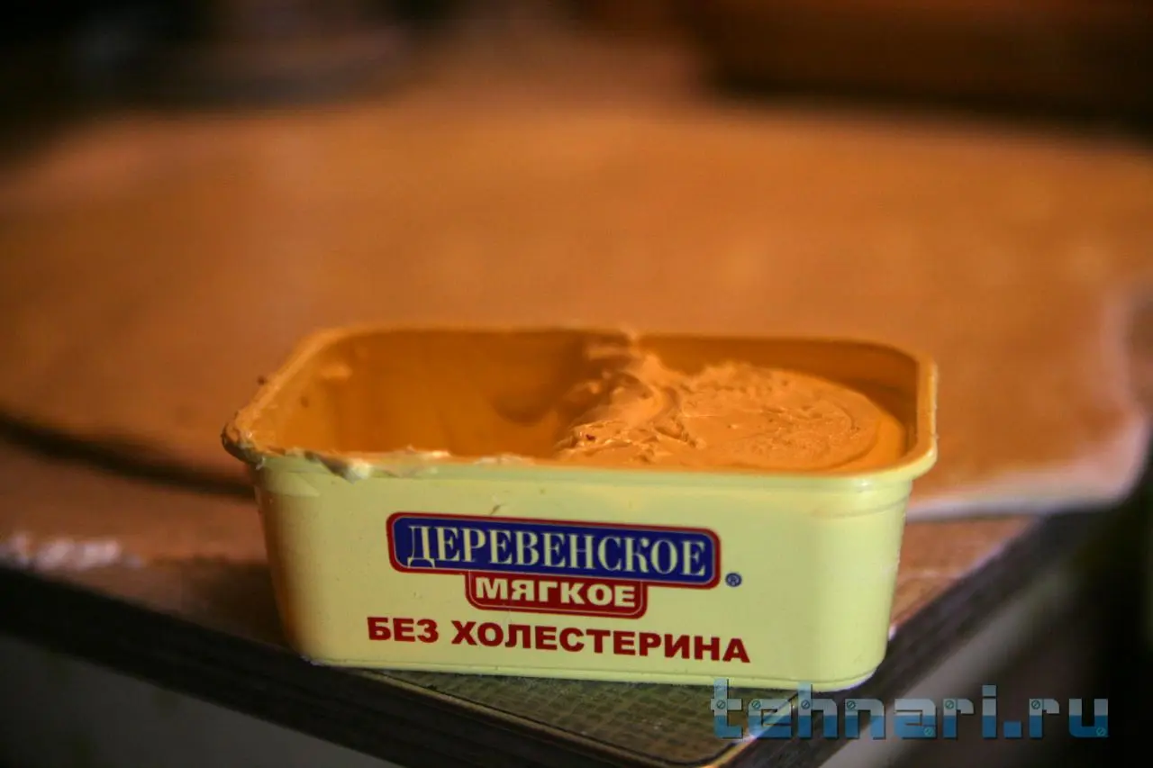 -масло или маргарин. Я использовал "деревенское"(оно вообще спред)
