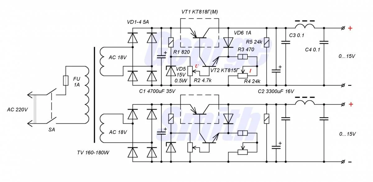 Это наверное я не понял, на какой схеме и какой КТ818 ?...Дак на схеме тоже с электролита сразу на эмитер кт818 идёт или я что то не понимаю