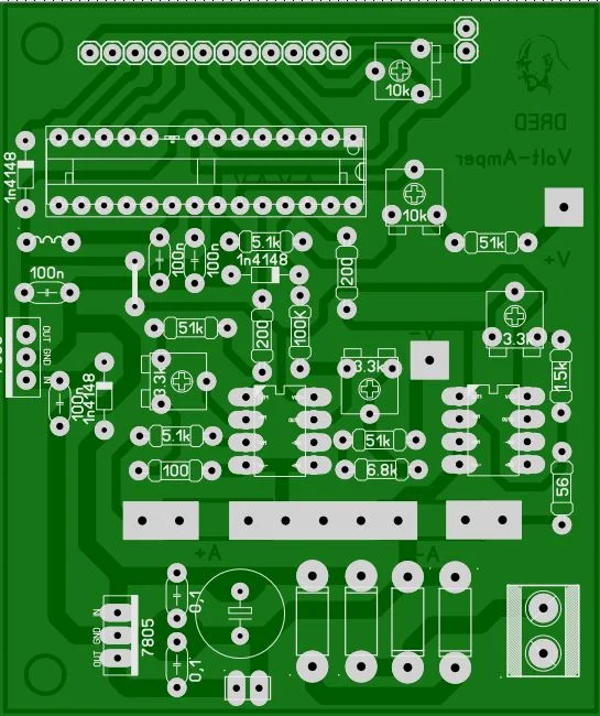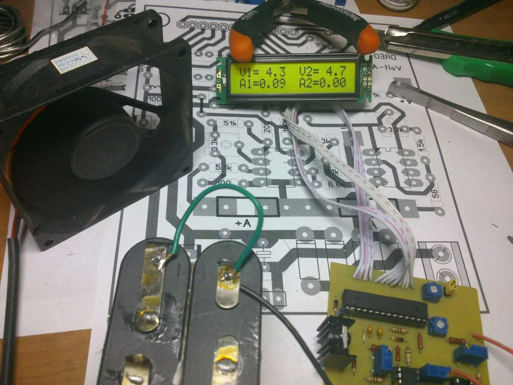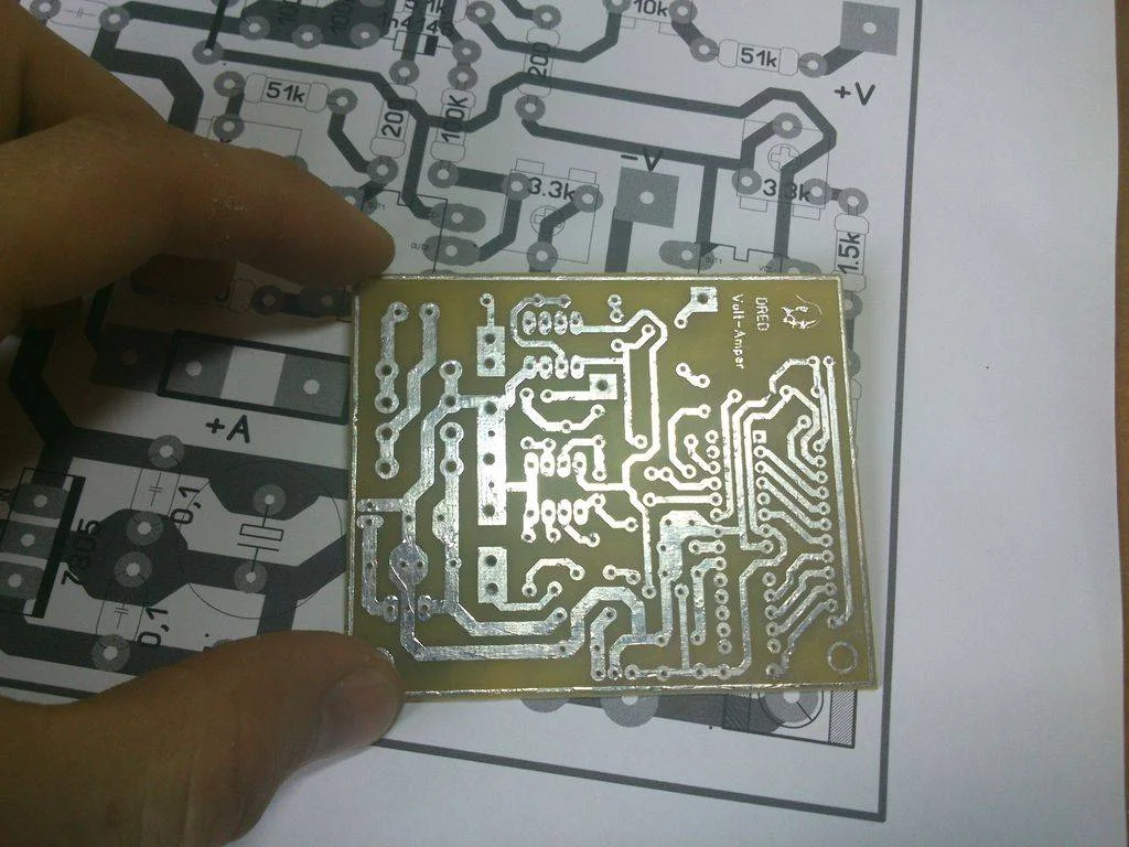 Сегодня вроде бы до разбирался со схемой, нарисовал новую печатку, вытравил и собрал новый вольтамперметр. Пока что как говорится полет нормальный. Правда у меня нет второго такого операционника, поэтому отрицательный амперметр пока не проверял, но думаю все должно быть отлично. Вольтметры заработали оба и амперметр положительного плеча тоже. Для шунта взял 45см медного провода диаметром 1мм и намотал его спиралью. (в печатке которую вытравил немного накосячил с диодным мостом, но переделывать уже было лень - вышел из положения перекрестив диоды) после этого печатку поправил :)