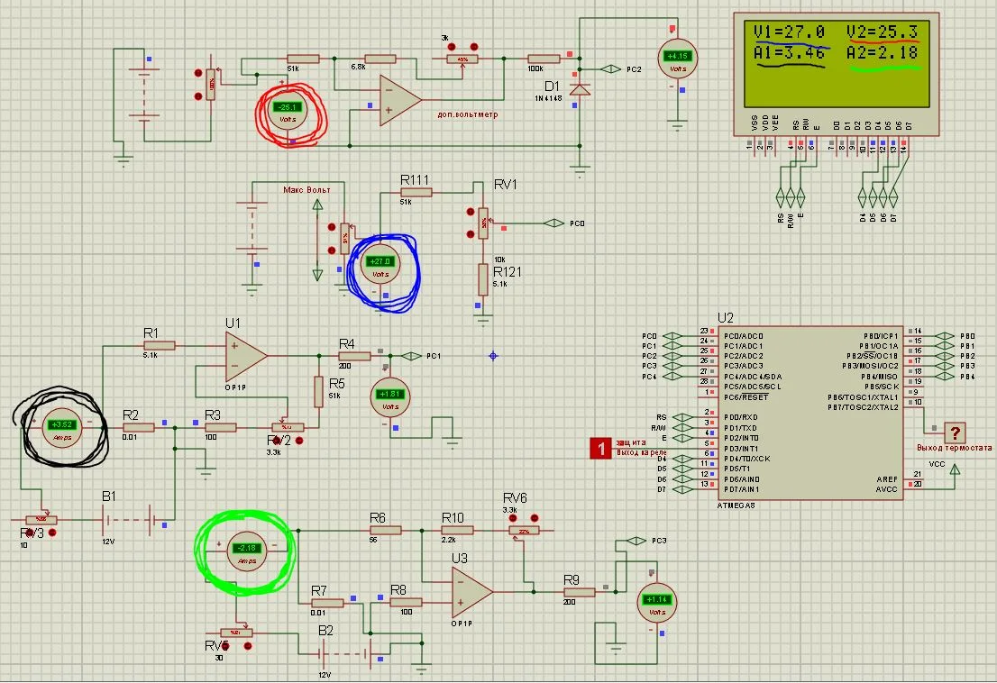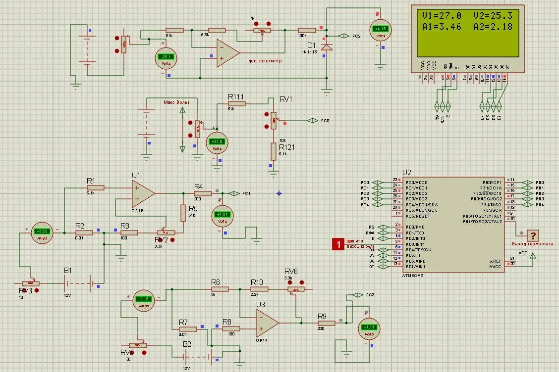 Я сейчас работаю над схемой для того чтобы она могла работать с отрицательными значениями. С вольтметром уже разобрался, остался только амперметр :)