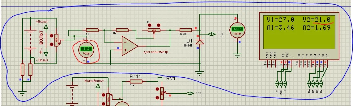 Мне пока просто интересно возможно ли на моей схеме с LCD сделать хотя бы показ двух положительных плеч