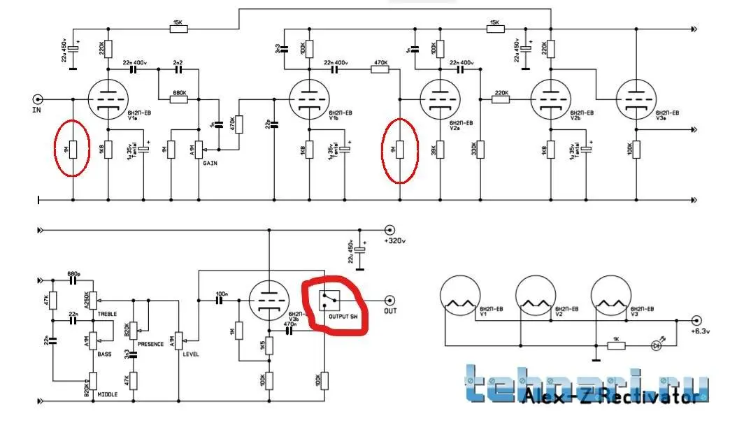 Смешивай до фазоинвертора и все ...А теперь такой вопрос: а как сделать так, что бы был вход перед фазоинвертором? И при этом сигнал родного преампа усилителя смешивался с входящим в разьем?