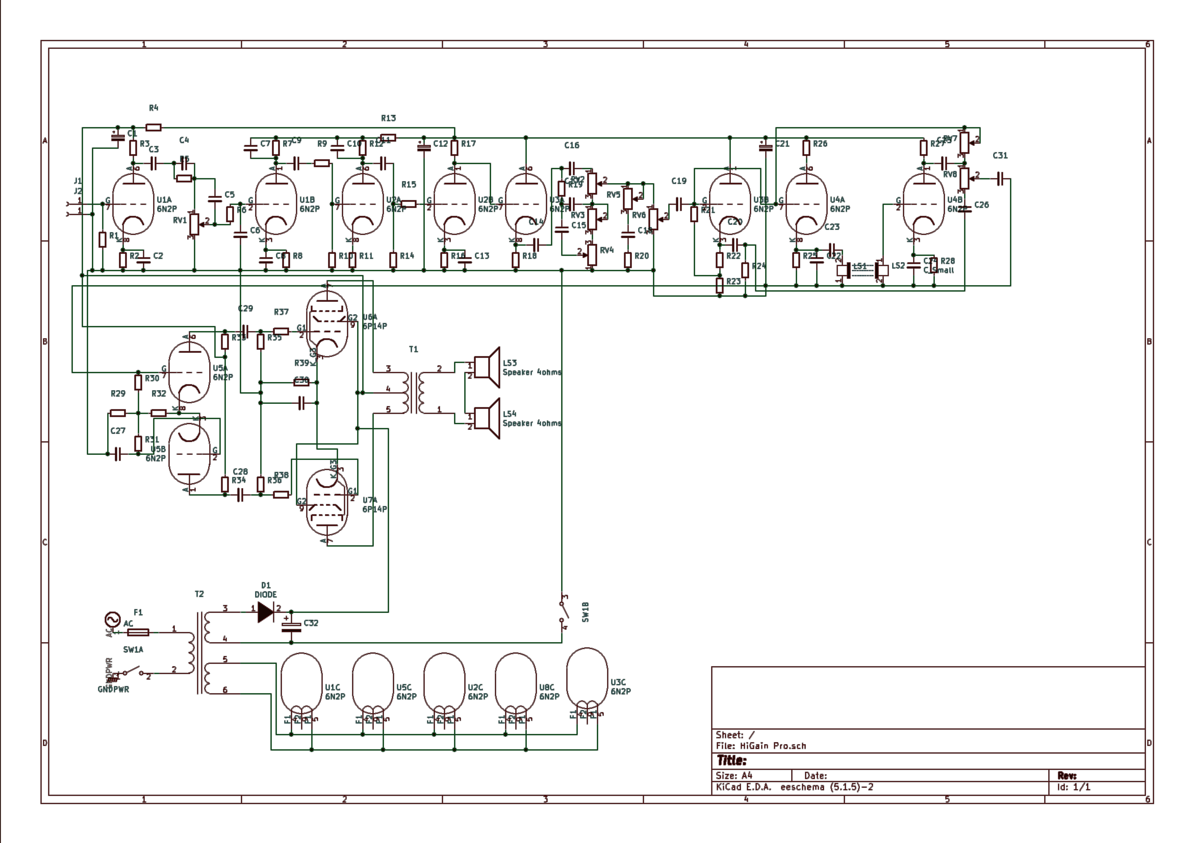 Ага, вот и прикатились. Накал то я для ламп EL34 не нарисовал! Ладно, завтра исправлю.