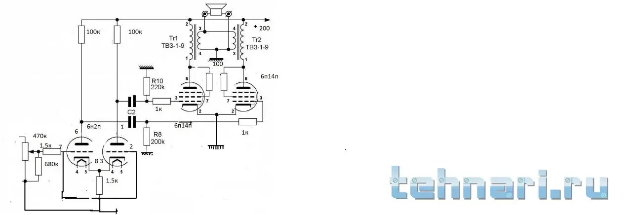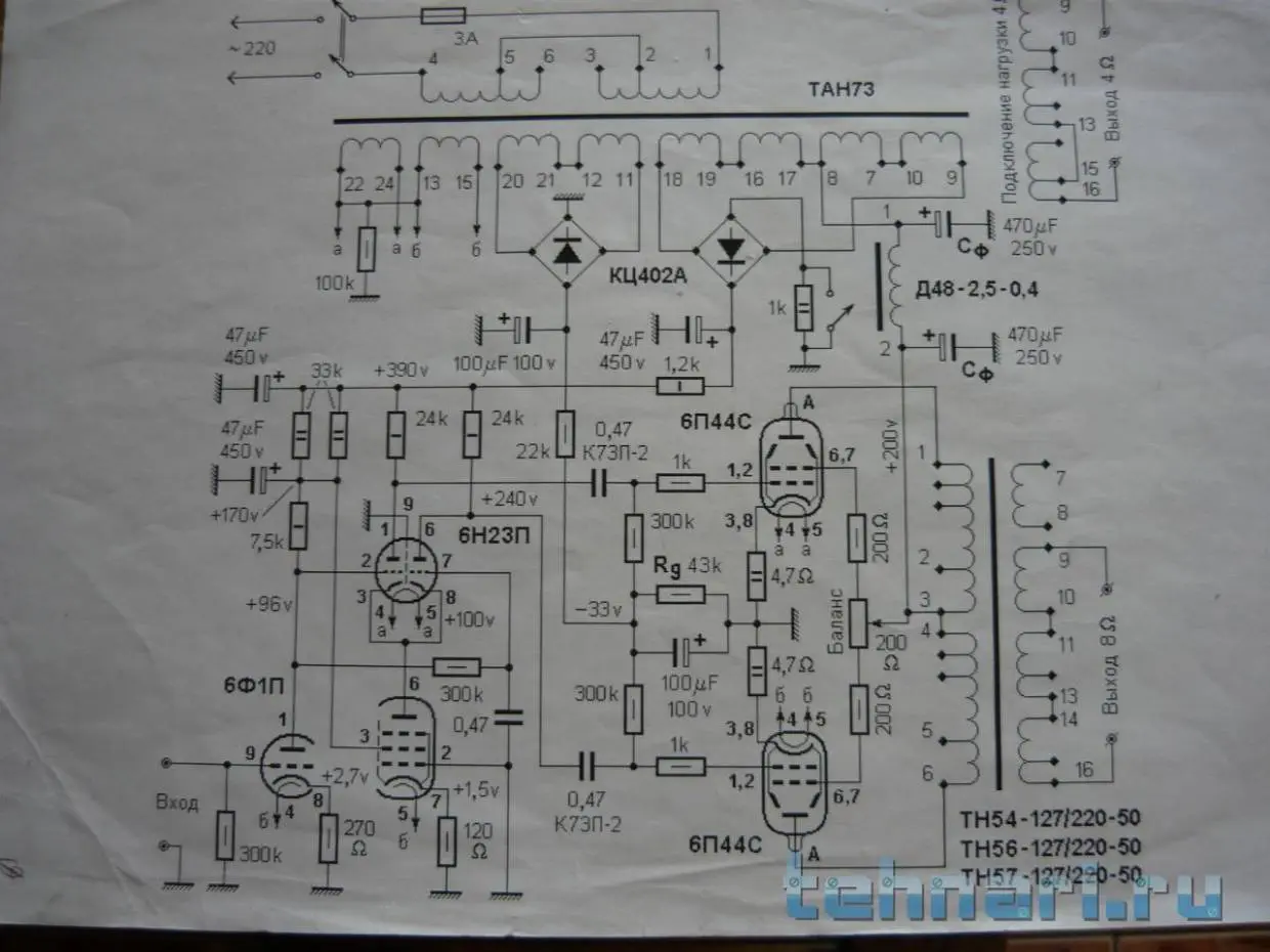 А дальше показать схему, рассказать про выходные трансы, режимы ламп...