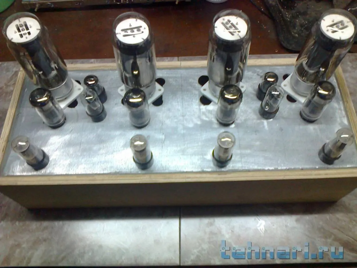 увидев по телевизору ламповый усилитель решил сделать сам взял корпуса просверлил отверстия под ламповые панельки вставил лампы .а дальше что?