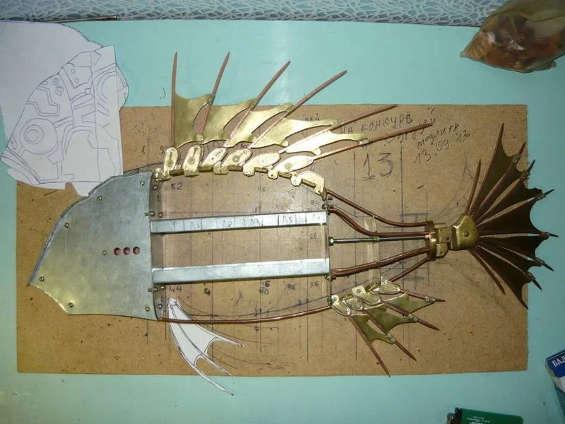 Завтра подготовлю материал для плавников и головы, нашёл две латунных трубки,