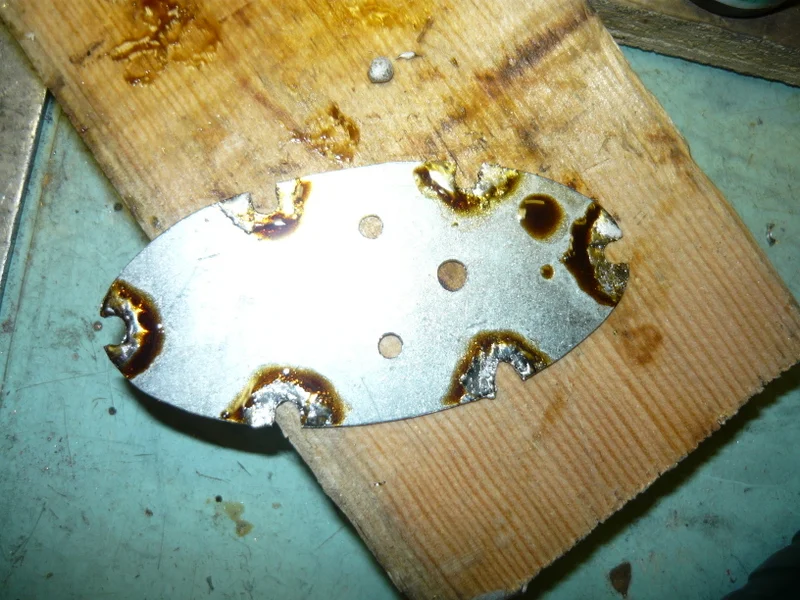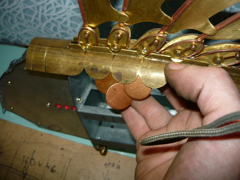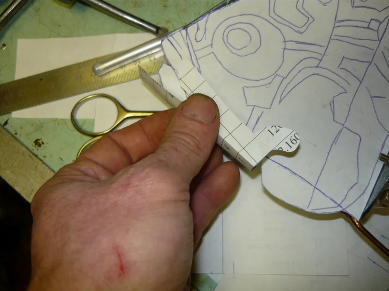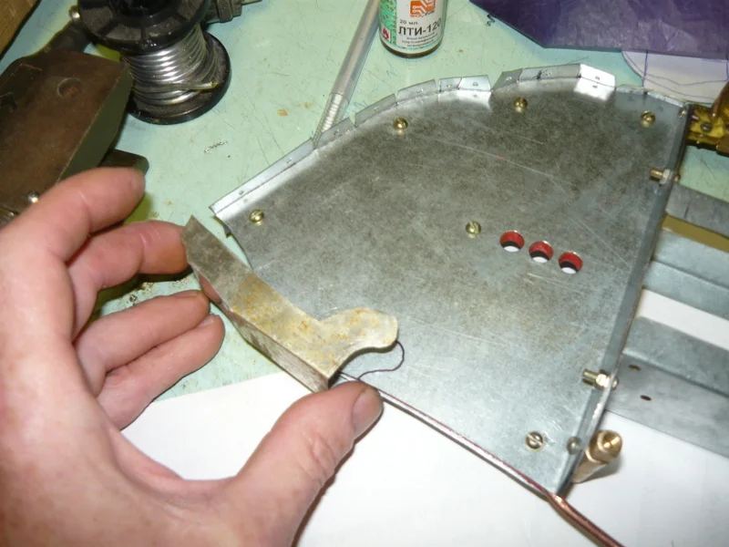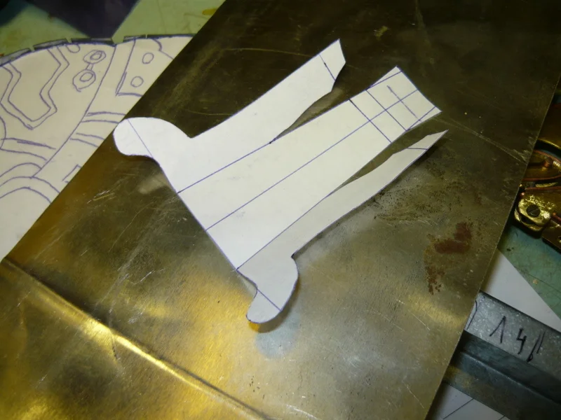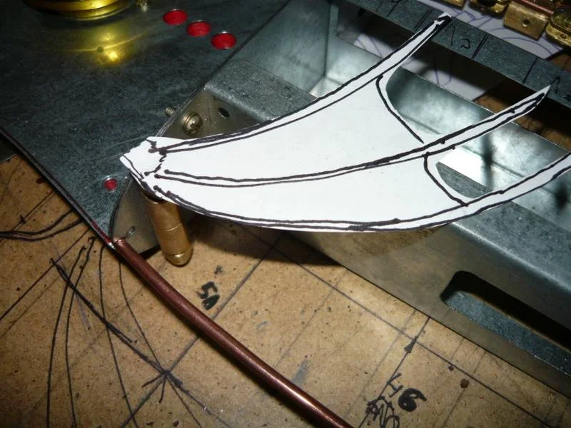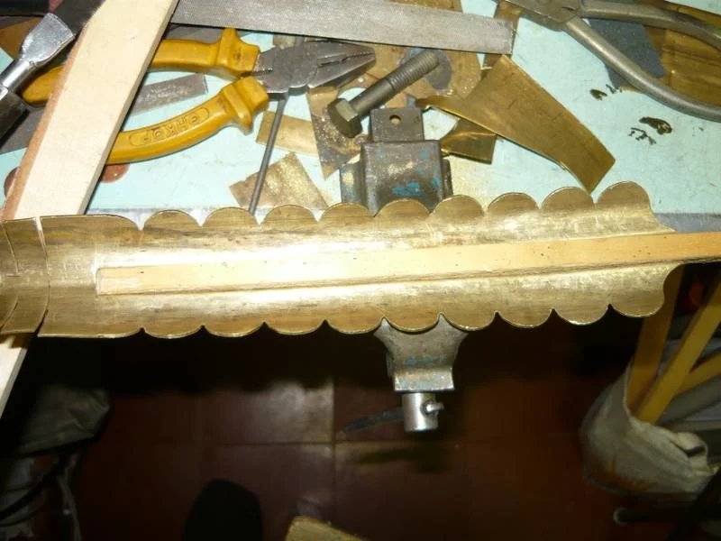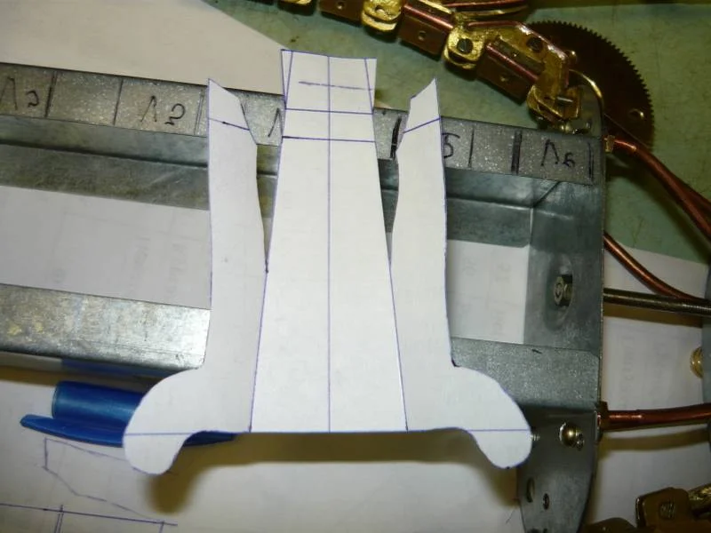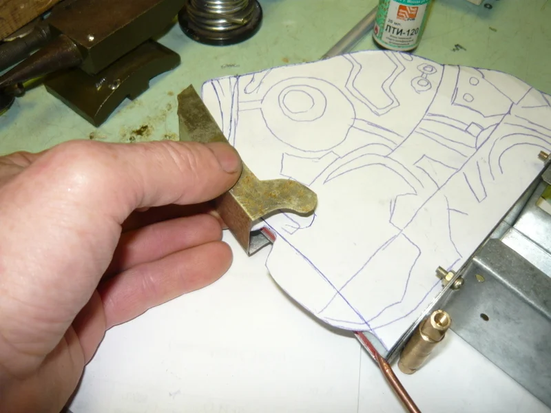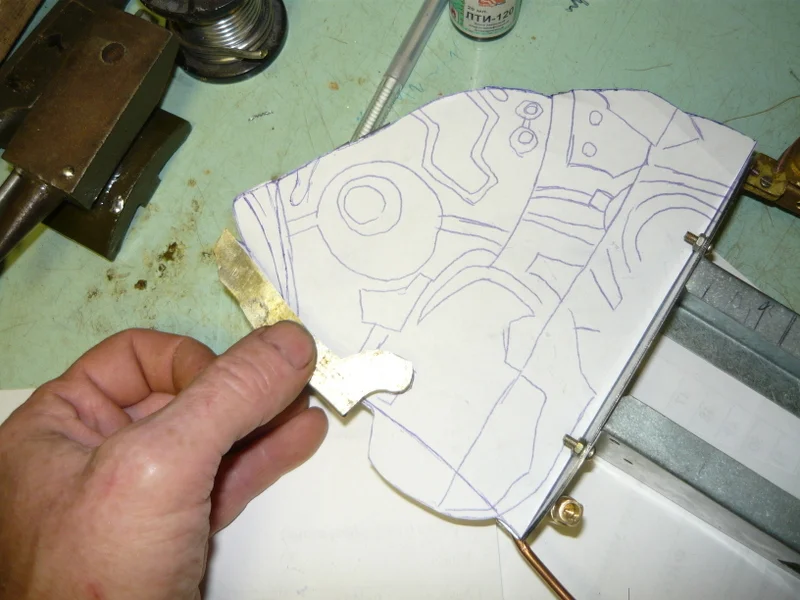 потом из тонкой лужёной жести, подгоняю, устраняю ошибки, все переношу на латунь.