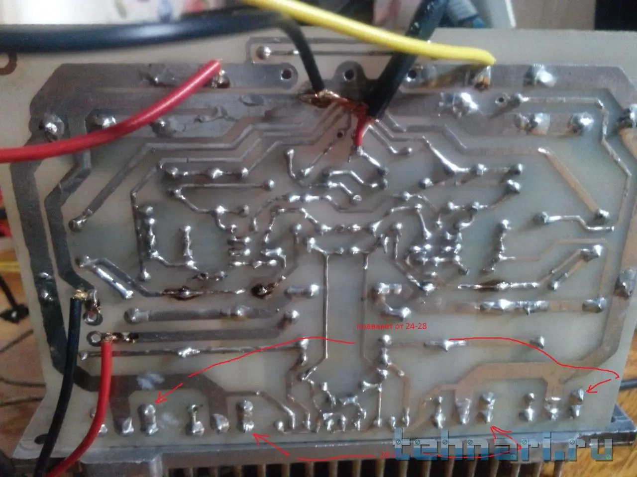 В идеале эти транзисторы зацепить на общий радиатор тогда ТП стоит отменно.Но данная конструкция платы это позволит сделать только на проводах.