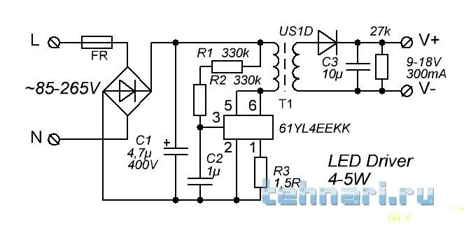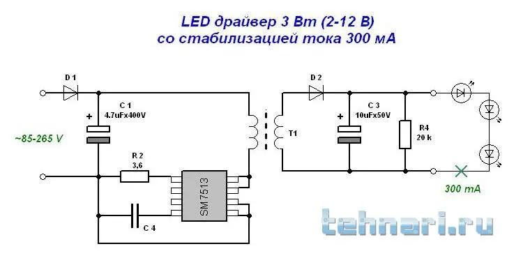 Имеются LED драйверы на микросхеме SM7513 со стабилизацией тока 300 мА. Возникла необходимость повысить мощность драйвера в 1,5-2 раза. Понятно что нужно заменить трансформатор, но может возможно и без замены обойтись?. Пытался найти даташит на микросхему (не удалось). Схема драйвера ниже. Жду полезных советов и рекомендаций. Если есть описание работы схемы (как происходит стабилизация тока) буду признателен.