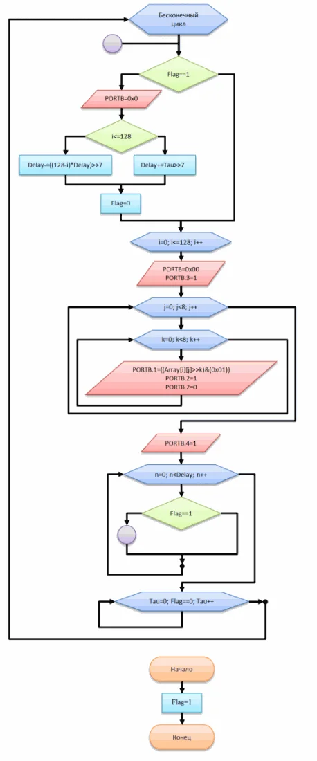 Сейчас в проекте ATTiny45, передаёт данные в 8 сдвиговых регистров, но я бы хотел взять вместо регистров драйверы светодиодов. Задержка (сколько должен гореть столбец) осуществляется с помощью пустого цикла. Для расчёта числа прогонов данного цикла используется внешние прерывание от геркона и пустой цикл идущий после того как все столбцы были отображены, когда пришло прерывание меняется значение флага, чтобы цикл прекратился и пересчитывалась задержка исходя из того сколько прогонов успел сделать этот цикл.