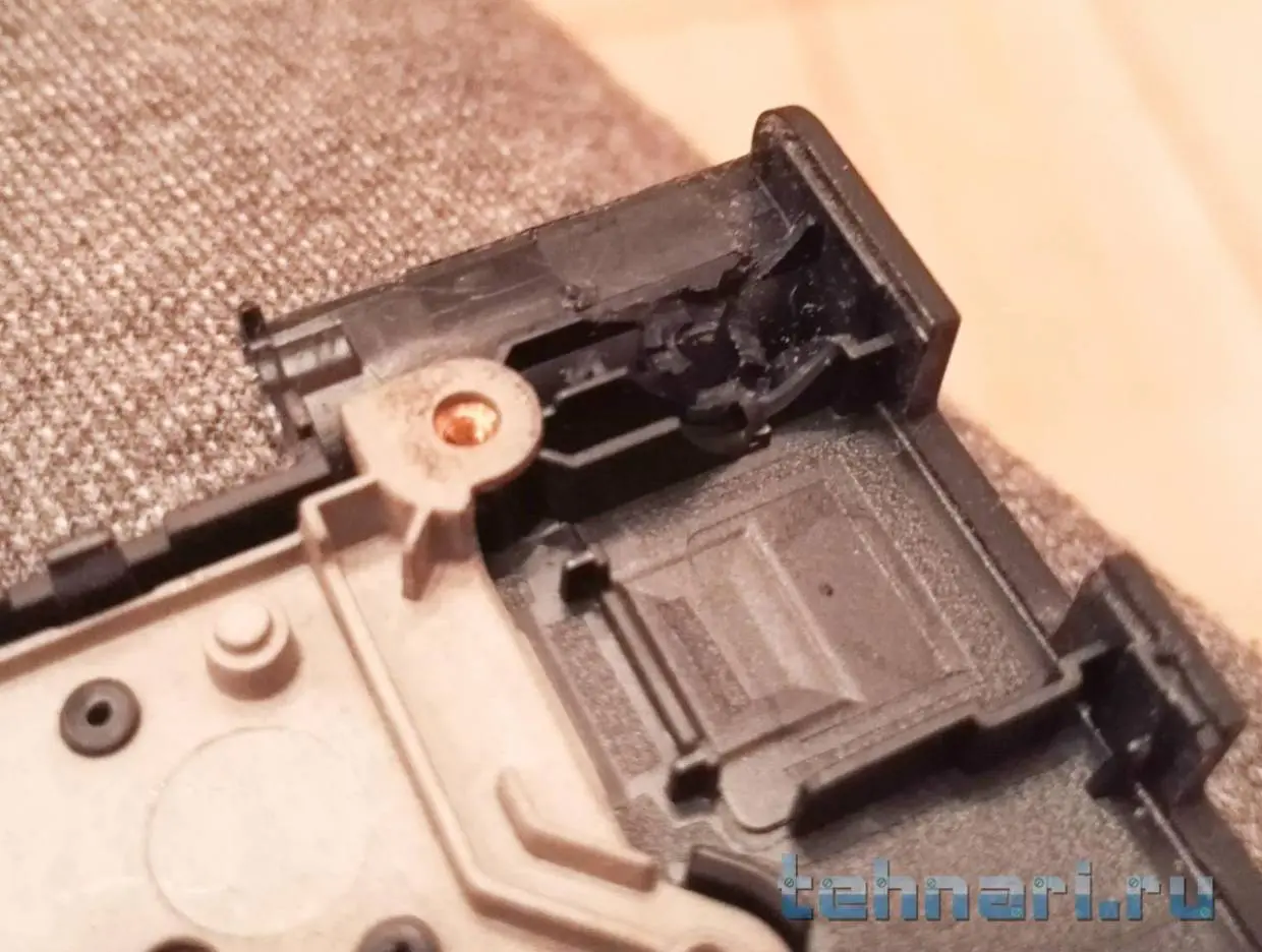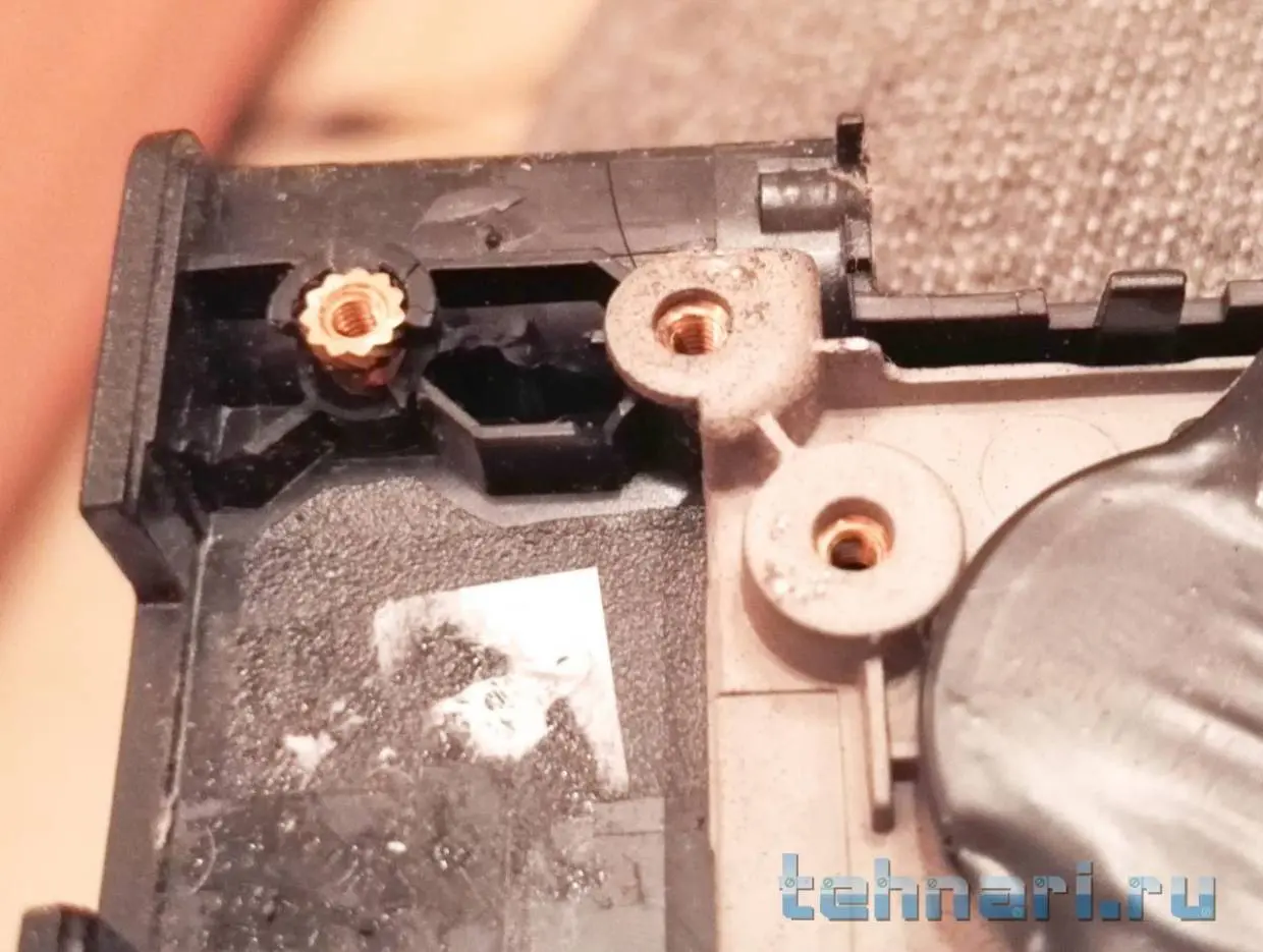 Вот собственно и весь ремонт, если бы не магниевая рама, которая зажимается между этими гайками и петлями, экран вырвало бы уже давным давно. Причиной думаю назначить высокую температуру работы, под нагрузкой в районе 75-80 градусов, постоянное расширение и сужение материалов, иссушивание пластика вот и результат.