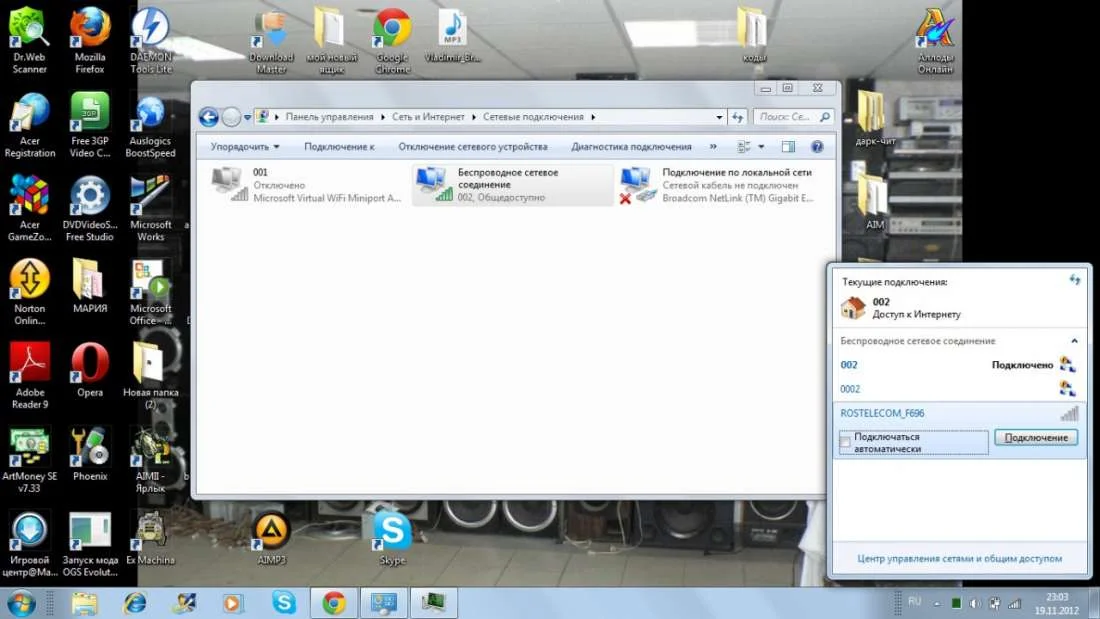 проблема заключается в том что стоит мне только подключить ноут по по беспроводной сети 002, как через минуту пропадает соединение и комп пытается автоматом подключиться к какой то чужой сети и связь рвется.