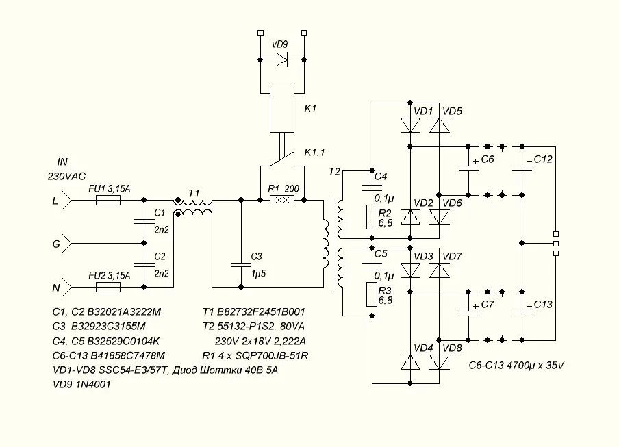 Блок питания полностью собран. Софт-старт выполнен на МК, который в свою очередь связан с модулем защиты АС, тоже на МК и помимо задержки включения трансформатора формирует сигналы для модуля защиты АС.