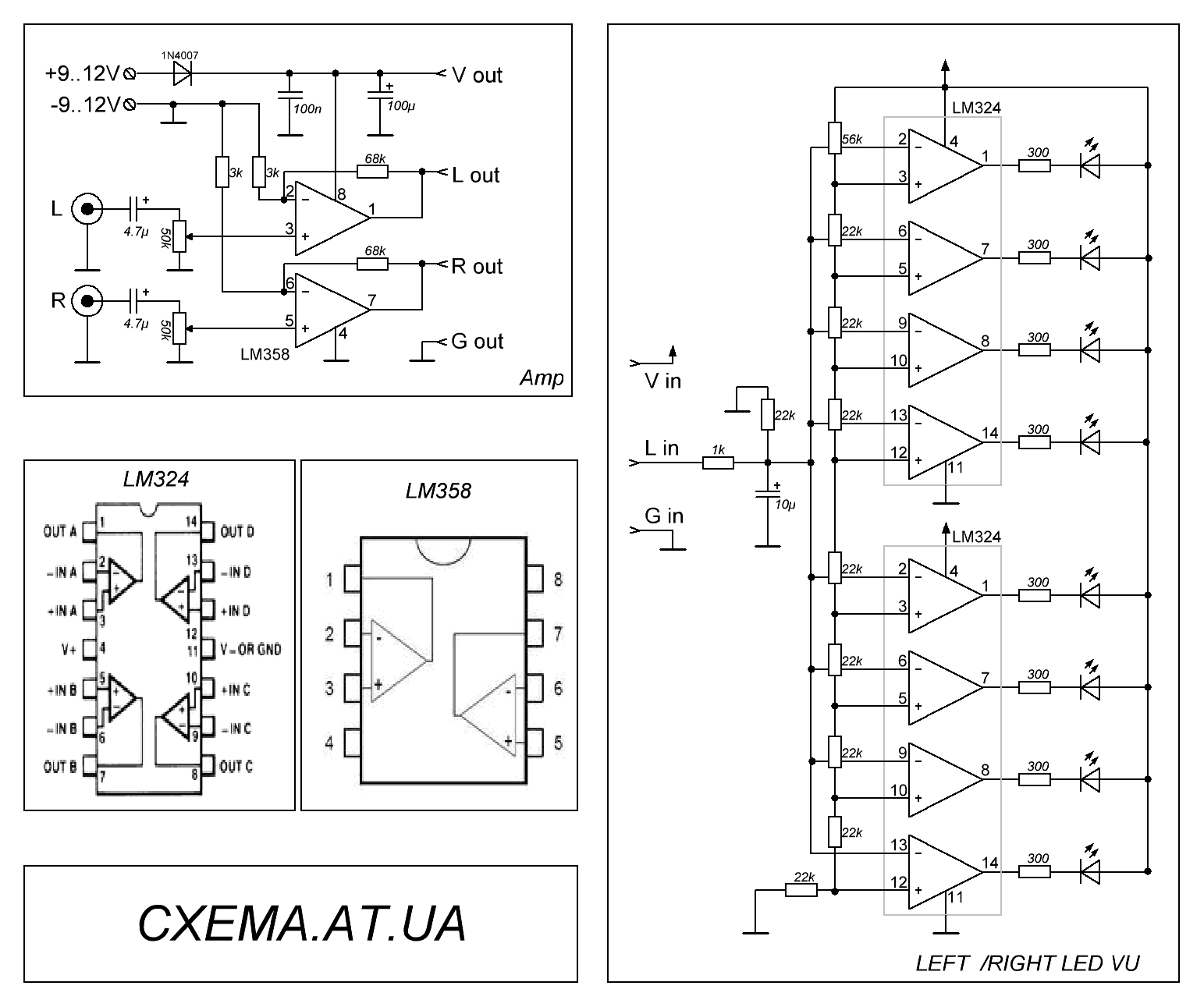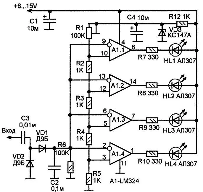 Здравствуйте. Я тут совсем недавно, если что не так строго не судите меня. Я еще "чайник". Меня интересует вопрос: какой индикатор нагрузки "перегрузки" усилителя, можно сделать на данной МС? И каким образом? Имеются в наличии 6 штук LM324WN