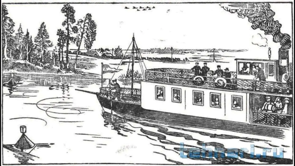 1. Вверх или вниз по течению реки идет пароход?