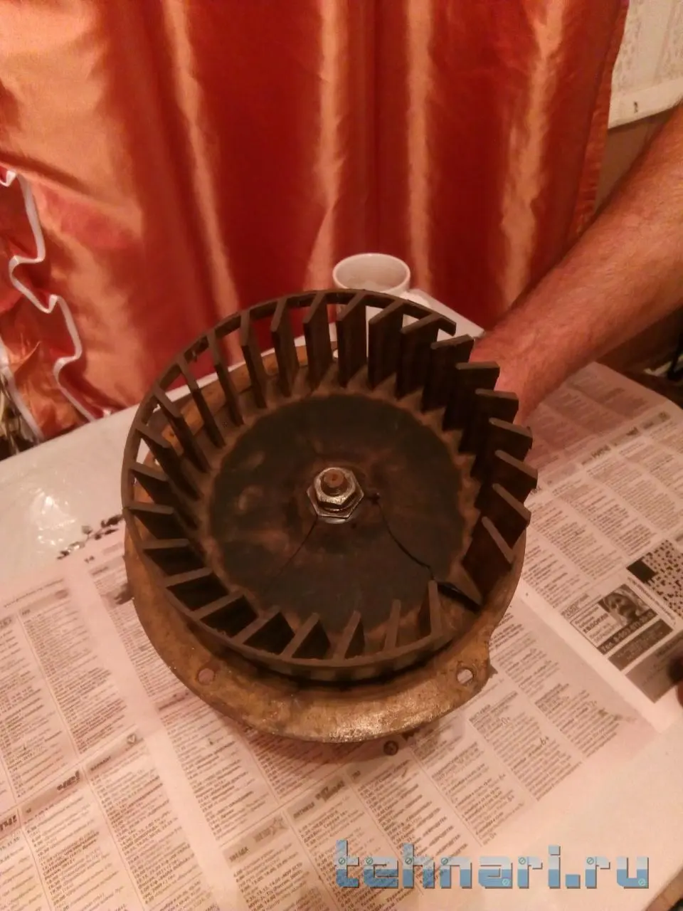 Добрый вечер форумчане. Возникла у меня проблема. В бане установлен эл. мотор 700.81.01.020 (МЭ-22а) на 12вольт, 120 ватт, который продувает воздух через горячие камни в металлическом коробе печки.Потрескалась на на эл. моторе пластмассовая крыльчатка, которая выполнена в виде беличьего колеса.Запасной крыльчатки нет , в интернете предлагают только эл. моторы.Нет ли у кого в запасниках такой штуки. Оплату гарантирую. Ремонтировать её усиливая металлом, помоему мало смысла, на ней 4 приличные трещины,3000 об./мин., всё равно наверное разобьёт. Буду благодарен за любую идею.Фото прилагаю.
