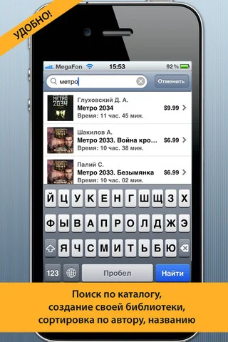 - удобный интерфейс с поддержкой поиска по Вашей библиотеке;