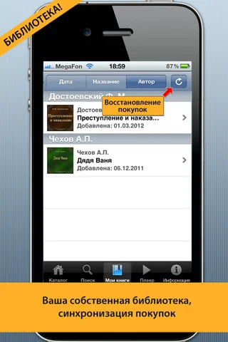 Loudbook - это огромная коллекция аудиокниг в Вашем iPhone, благодаря чему, теперь Вы сможете слушать произведения любимых авторов в любой удобной вам обстановке: в машине, метро, идя по улице или лежа в постели. Приложение позволяет загрузить в ваш iPhone любую из 2500 доступных аудиокниг. Вашему вниманию предлагаются аудиокниги абсолютно любых тематик и направлений: детективы, поэзия, фантастика, классика, современная проза, бизнес-литература, детская литература, материалы для студентов и школьников, тренинги и многое другое. Отдельно стоит ометить наличие аудиокурсов, благодаря чему процесс обучения становится еще более приятным.