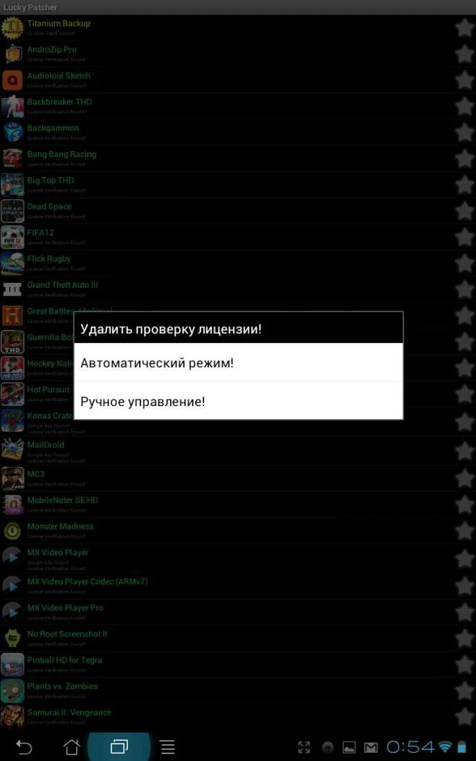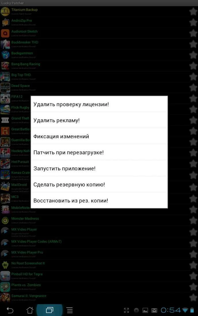 - для применения патча выбираете нужное приложение и удерживаете на нем палец до появления меню