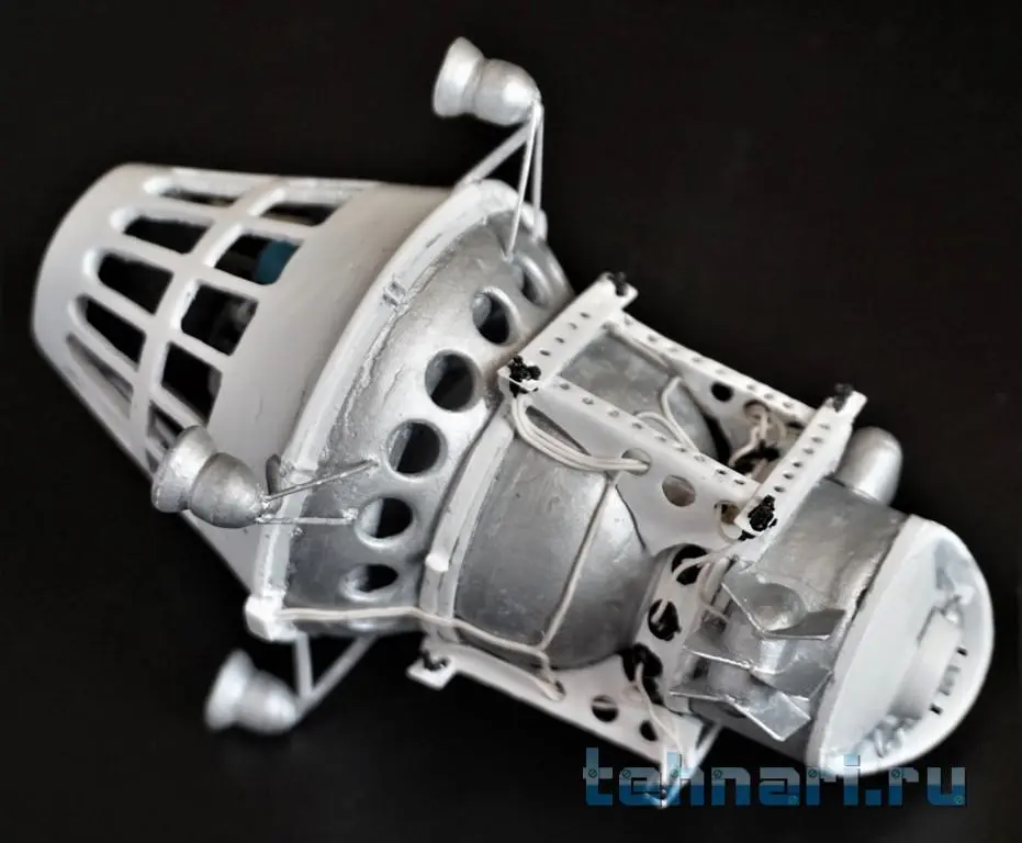 Модель была сделана мною "с нуля" в М1/24 для участия в международном конкурсе, посвященном 60-ти летию полета Ю.А. Гагарина, проводимым журналом ВКС("Воздушно-космическая сфера").