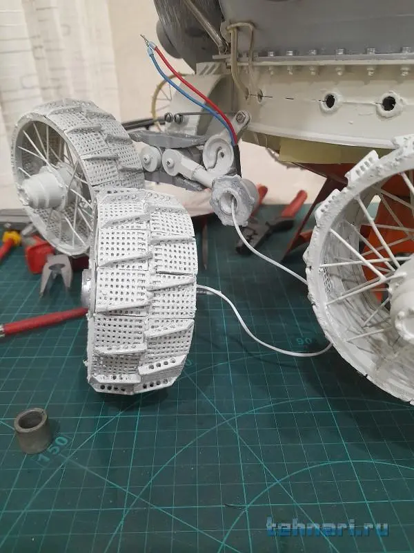 Поехали... Отсоединяем провода неисправных колёс и выдёргиваем их из корпуса Лунохода.