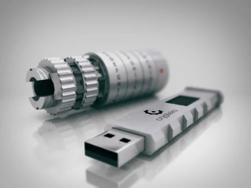 Флешка Crypteks USB зафиксирована в алюминиевом цилиндре с кодовым замком. Чтобы достать USB-накопитель, необходимо знать код доступа. Подобрать не получится – ведь для этого придется перебрать 14 348 907 возможных комбинаций.