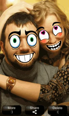 В качестве основной функции приложения MakeMeSmile Camera лежит камера. Программа фотографирует человека после чего автоматически распознает лицо и делает из него смешные эффекты. Вы найдете более 100 веселых эффектов для поднятия настроения себе и своим друзьям. Где бы вы не находились. В школе, на работе, на паре - где угодно MakeMeSmile Camera развлечет тебя за считанные минуты.
