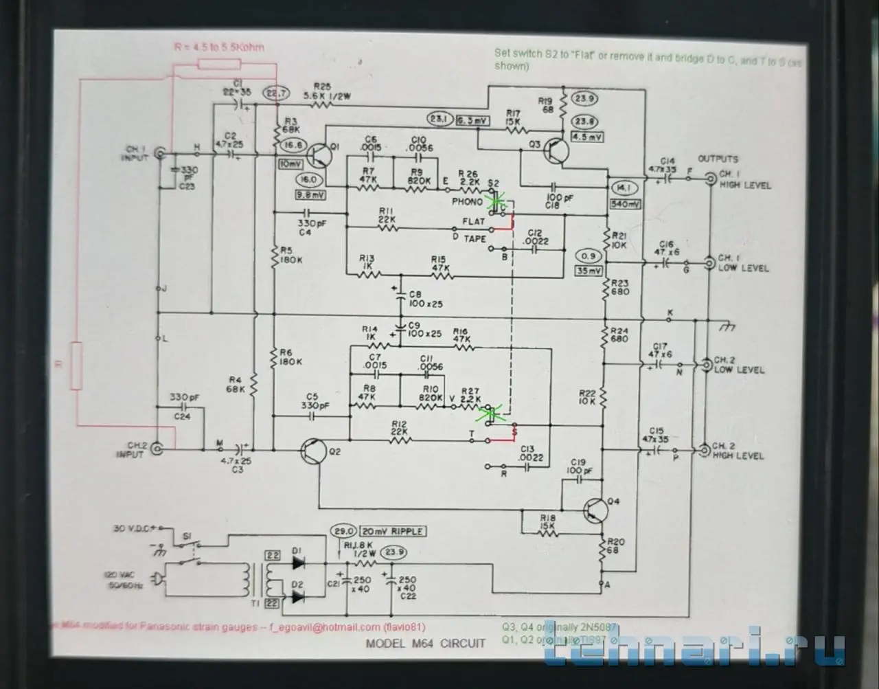 Вот один из вариантов. Это схема фонокора Шур М-64.красным показана доработка.коррекция отключается,подается запитка.предлагает на одной колонке кабель наоборот подключить для правильного стерео