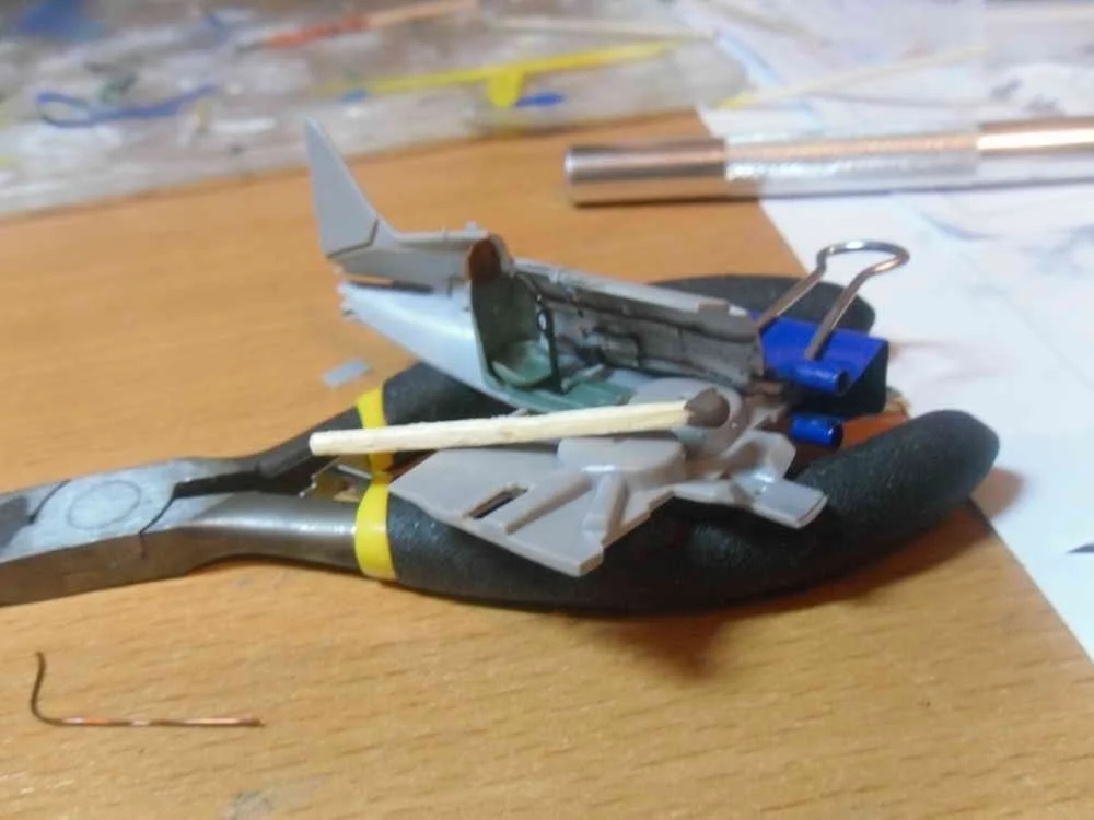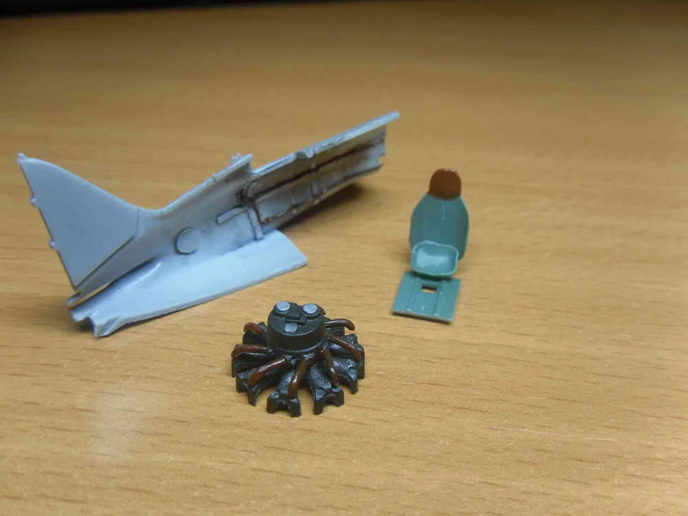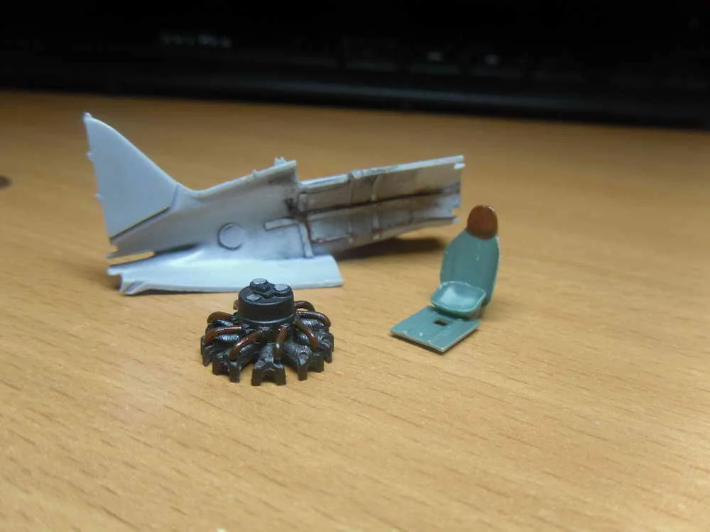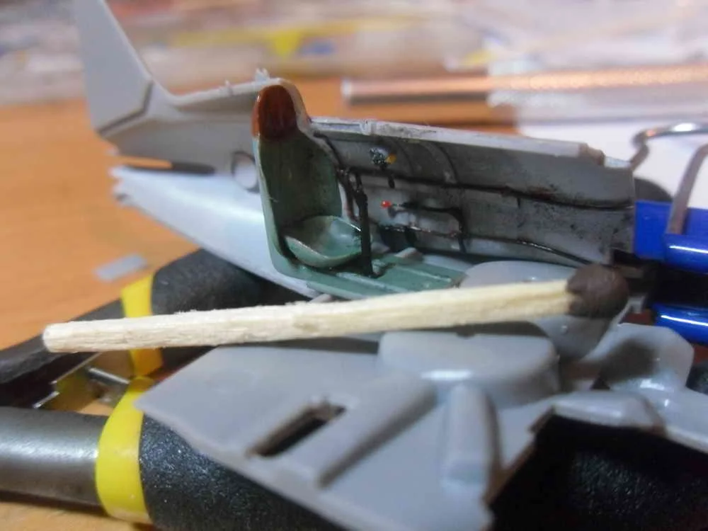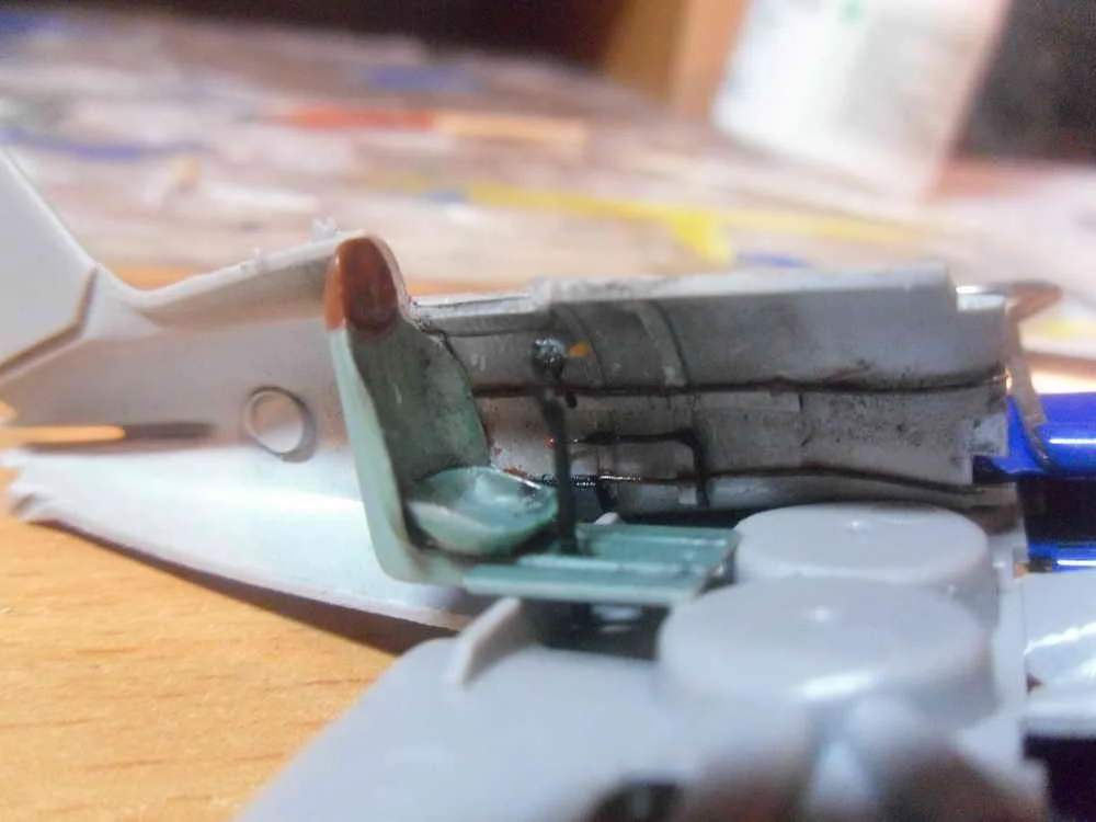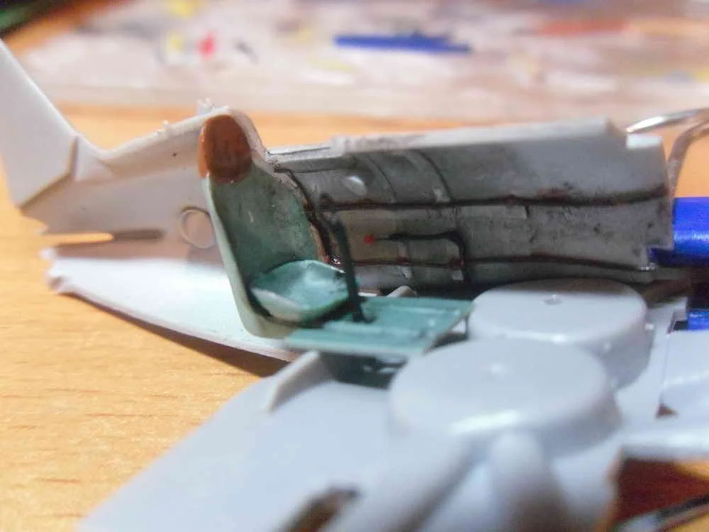 Покрасил подголовник кресла пилота, так же выкрасил патрубки на двигателе и поправил шланги на левом борту....