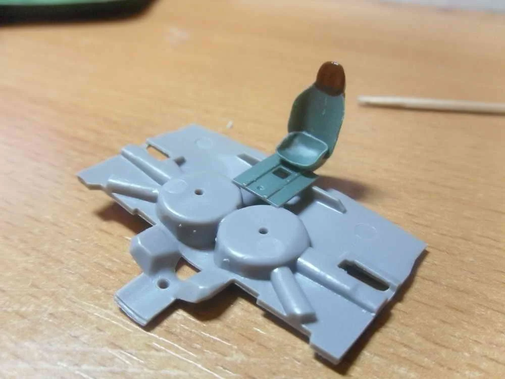 Ну вот и снова дошли руки до И-16. Собираю помаленьку кабину, вот приклеил кресло пилота, а затем поставил штурвал....