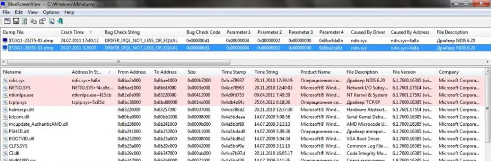 Нашёл одну програмку для анализа дампов BlueScreenView , скрины прилагаю