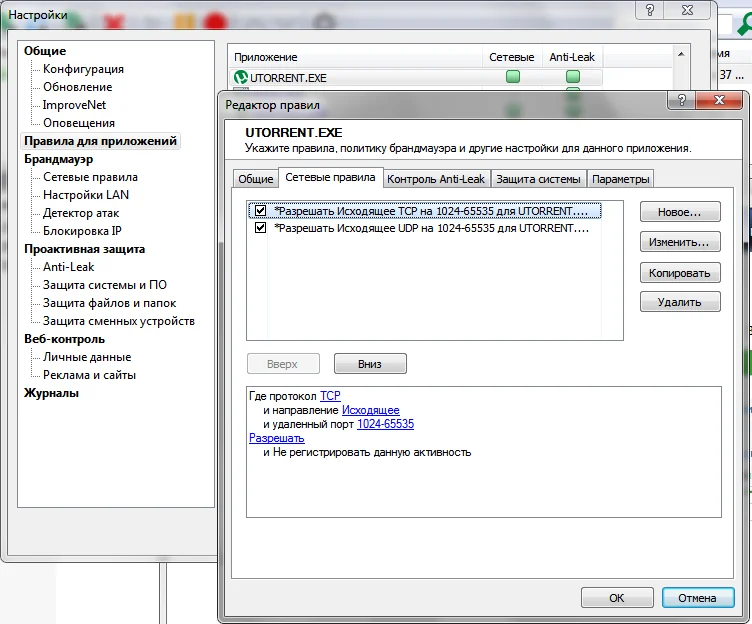 Обновлял драйвера не помогло , винду переставил тоже вылетает , лазил по разным форумам , решил попробовать один совет (во-первых, назначьте статичный порт для utorrent, например 1515. во-вторых, в правилах аутпоста делаем так: в глобальных правилах разрешаем входящие TCP и UDP на порт 1515, а в правилах к самому utorrent - разрешить исходящие TCP и UDP на порты 1024-65535. всё, клиент настроен. далее проверяем исключения в антивирусах\аутпосте (клиента тоже можно поставить в исключения в аутпосте)) скрины выложу . Вылетов пока не наблюдается , попозже отпишусь .