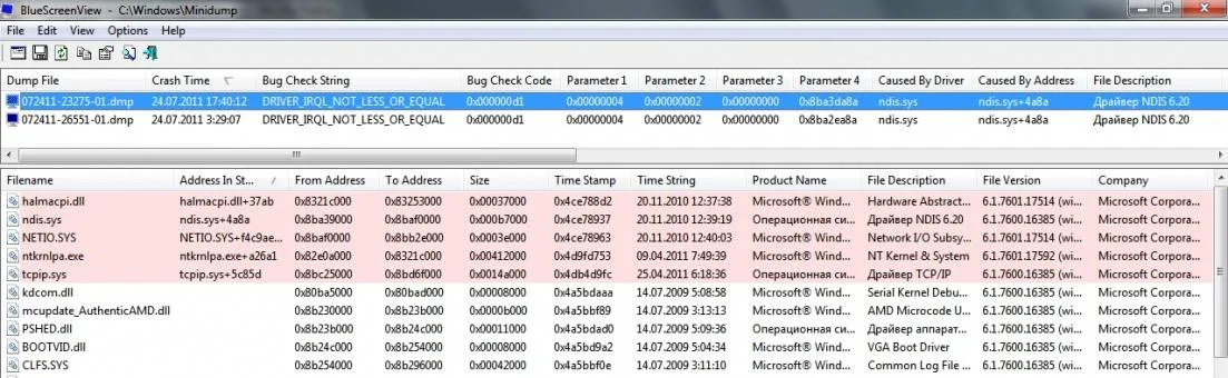 Вот только что опять BSOD , ругается на ndis.sys . Покопаюсь в сети может что-нибудь найду .