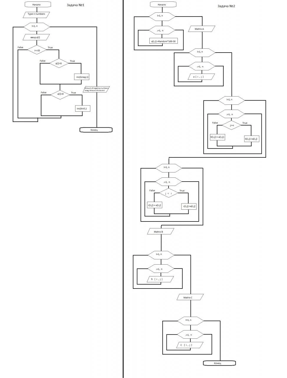 До пятницы блок-схему не успею. Программа хочет, что бы ты ввел 45 элементов :) а к первой задаче задание не очень понятное, лучше картинкой приложи. Взяться за нее сейчас не смогу