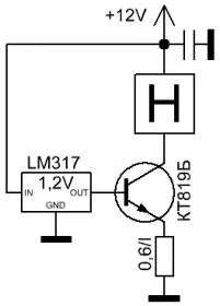 Полностью согласен про падение на микрухе забыл (каюсь)....Если LM317 заставить работать как стабилизатор тока - то на нём падать будет около 3,75V. Это дохрена. Лучше простой двухтранзисторный стабилизатор тока. Или даже однотранзисторный. Схем в инете валом, если не поленится поискать...