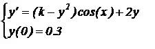 Ток в электрической цепи описывается дифференциальным уравнением (см. стр. 24), которое необходимо решить, найдя y(0.1), y(0.2) ... y(1) с помощью метода Рунге-Кутта второго порядка с коррекцией по средней производной (в дифференциальном уравнении k = 6 По найденным значениям y определить количество тепла, выделяющееся на единичном сопротивлении за единицу времени, по формуле с помощью метода трапеций.