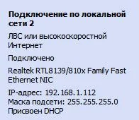 Подключение по локальной сети 1 - внутренняя ЛВС