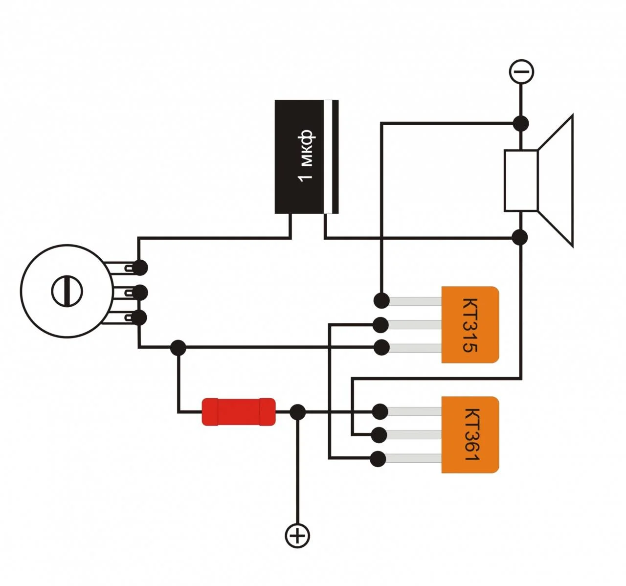 Доброго времени суток. Я учусь школе и в электронике плохо понимаю. На УПК нам сказали сделать метроном, но я не могу его собрать. Там есть 2 транзистора (кт315 и кт361) и я не понимаю как их ставить. Мне только нужна монтажная схема метронома. А вот принципиальная схема (нарисовано плохо, но понять можно). Заранее спасибо.
