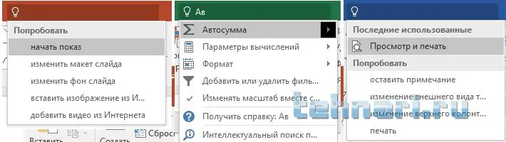 Вот склеенные скриншоты ленты меню из PowerPoint 2016: